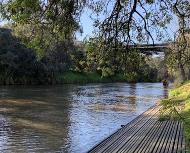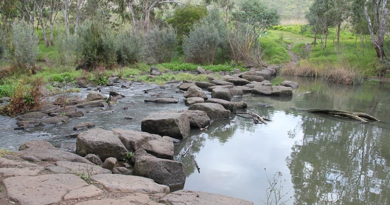 Solomons Ford offers a beautiful stretch of river walk paired with off leash areas where dogs can enjoy short bursts of freedom. The stepping stones add a fun confidence-building element, while the surrounding parkland encourages relaxed exploration and sniffing. It’s a well-balanced adventure that blends guided movement with free time. Best suited to confident, social dogs who are comfortable transitioning between on and off leash environments.