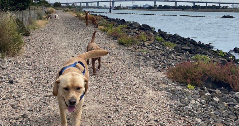 This coastal trail offers long, flat paths with open bay views and cooling sea breezes, making it ideal for steady, comfortable on lead walking. The relaxed coastal setting provides gentle sensory input without feeling busy or overwhelming. Best suited to polite walkers and dogs who enjoy calm, structured outings with a view.