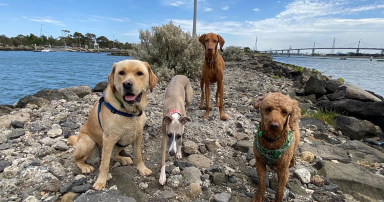 4 to 4.5 hour outings across Melbourne’s best dog-friendly locations. Max 6 dogs per group.